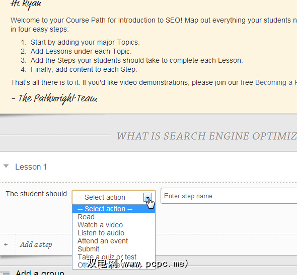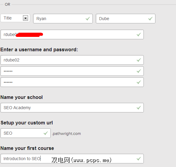 Pathwright是另一种课程托管解决方案,但是它具有更多支持的功能您是一名在线讲师,包括信用卡处理,资源以及设计课程和品牌等方面的支持。首先,您可以免费注册一个帐户。您可以选择“学校"的名称,然后查看是否可以在字段中输入pathwright.com URL。我有SEO.pathwright.com!哇!