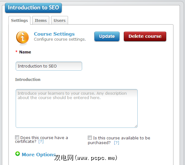 课程创建和其他网站一样简单。布局整洁,可以在每个选项卡上访问课程设置,课程项目和注册用户。