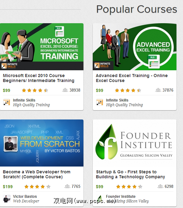 只需查看“热门课程"类别,即可了解人们为课程获得的价格。