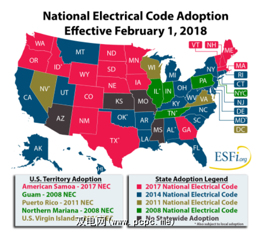 该法规不是联邦一级的法律。取而代之的是,要由各个国家来实施。如果某个州已申请NEC,则不遵守规则是违法的。在撰写本文时,只有亚利桑那州,堪萨斯州,密西西比州和密苏里州尚未实施该代码。