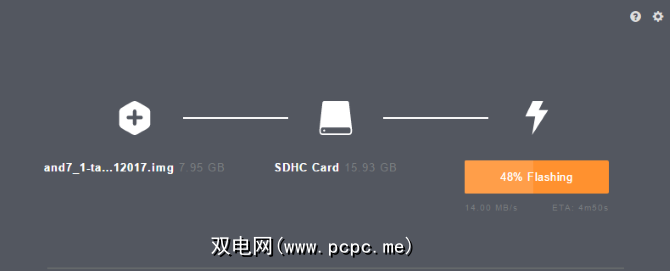 在写入IMG文件并检查数据后,Etcher将显示一条消息。