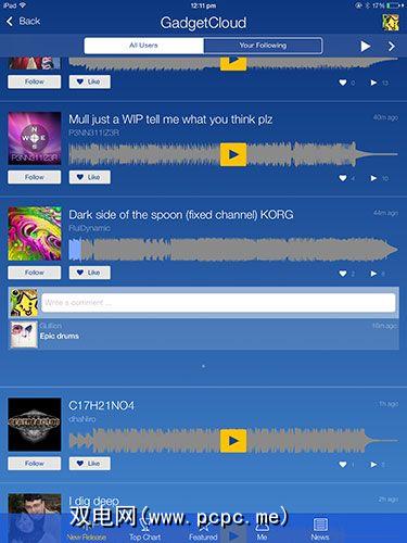 完成混音后,您可以通过GadgetCloud(由SoundCloud支持的应用程序内歌曲共享系统)进行共享。 GadgetCloud在图表中显示新版本,特色歌曲和流行曲目。只需轻按,评论或收藏曲目即可跟踪您喜欢的用户-所有这些都需要一个SoundCloud帐户(您应该已经拥有)。不仅创造力丰富,创作的音乐种类也证明了该应用的深度和复杂性。