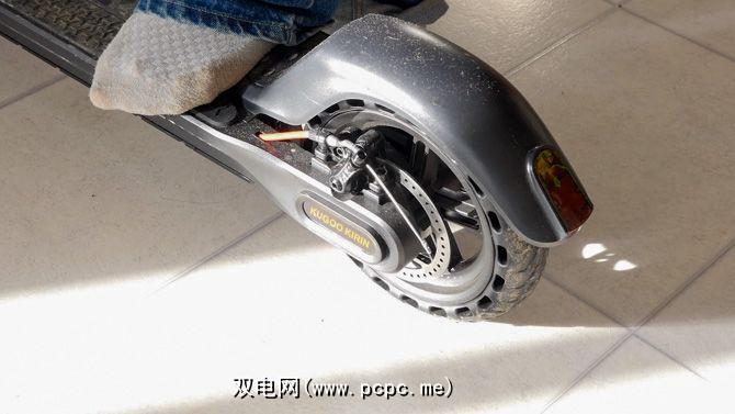 控制很简单,但我建议您将Kugoo ES2置于初学者速度模式,直到您习惯刹车和巡航为止控制。左侧的拇指控制杆控制着前电子制动器,但后轮上还有一个物理盘式制动器。