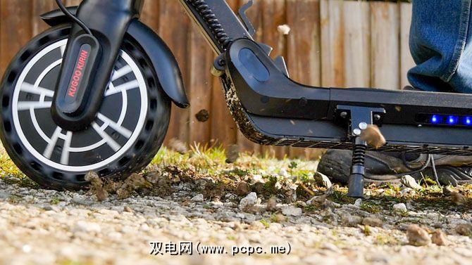 具有前减震器和8.5英寸坚固蜂窝状轮胎,Kugoo ES2可在典型的城市地形上平稳行驶。它不是为越野而设计的,但这丝毫没有阻止我进行测试。在压实的碎石路面和干燥的泥土路面上,尽管您确实可以感觉到颠簸,但它的操控性令人钦佩。在更深的砾石上,它根本无法通过。总体而言,它对我的小镇周围各种地形的处理方式给我留下了深刻的印象,包括我们赖以生存的未采用的土路。