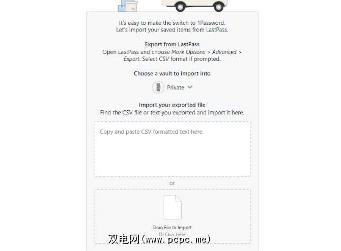 您可以复制和粘贴LastPass导出中的文本数据,也可以使用上传器添加CSV文件。