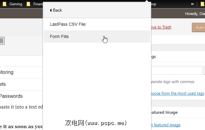 您还可以导出表格填充数据,其中包括您的信用额卡信息。有些应用程序可以导入此数据,而其他应用程序则不能。要导出它,请打开LastPass浏览器扩展,然后单击更多选项>高级>导出>表单填充。