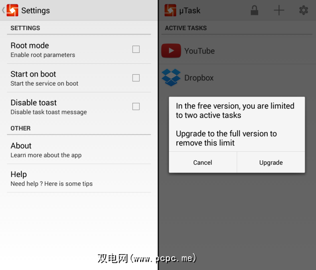 无论您的设备是否已植根,上述设置均可用。但如果扎根(PSA:Android扎根指南),uTask会解锁您可以执行的其他一些调整: