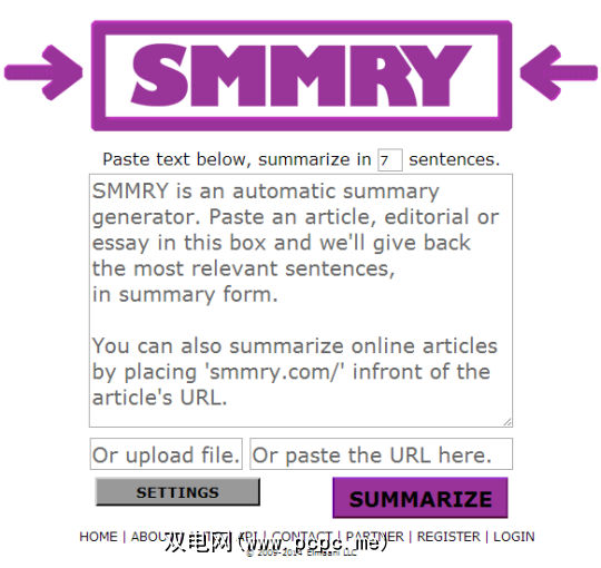 SMMRY具有极简风格,但有很多功能可以发现。这次,您没有设置要丢弃的文本的阈值,而是设置了要在其中总结文本的句子数。它提供了粘贴文本,上传文件(仅允许PDF)或输入URL的选项。