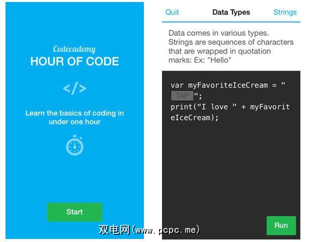 Codecademy是Hour of Code程序的课程提供者,该应用程序支持正在努力向所有人进行教育,以学习一些编程技能的重要性。目前,该应用程序已在五个不同的部分中推出了基础课程,这些内容从一个部分进入另一个部分:简介(“入门"),数据类型,变量,比较和If ... Else。这些部分将通过示例和问题进行说明。通过回答选择题和填空题,学生可以从一堂课进入下一堂课。显而易见,其目的是使您轻松地随时随地熟悉编程。