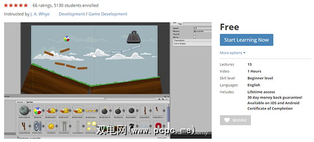 如所承诺的那样,本课程将教您制作Unity 2D物理游戏 。与列表中的其他课程相比,课程长达1个小时,相对而言比较短,但这是了解Unity及其物理引擎的2D方面的宝贵资源。