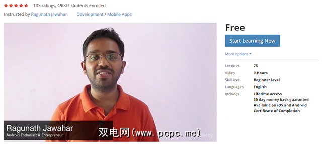 这门免费课程提供了不到9个小时的精彩内容,它将教您创建自己的Java所需的知识Android应用和如何在Play商店中分发它们。涵盖的主题包括事件处理,界面设计,通知等。