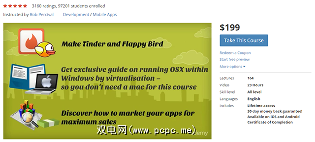 该课程涵盖8个不同的应用程序,最终形成功能齐全的Flappy Bird克隆。绝对值得高昂的价格。