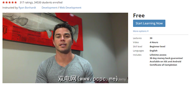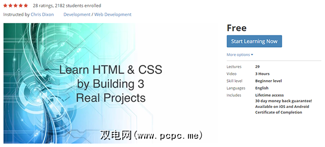如果您是Web开发的绝对新手,这是第一门课程你应该服用。 在1周内建立您的第一个网站是专门为您所在位置的人们而设计的,它需要4个小时的时间来学习HTML和CSS的基础知识。