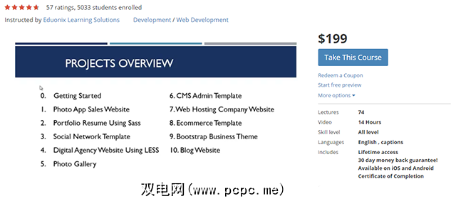 对于爱好者来说,价格有点高,但是如果您认真考虑在Web开发方面的职业,这门课程将很快收回成本。