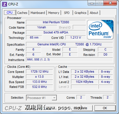 此选项卡的最大好处是,它使您可以按插槽查看内存大小。例如,我记得曾经升级过这台笔记本电脑的RAM,但是我不确定该如何处理。现在我知道我在一个插槽中有一个2GB DIMM模块,在另一个插槽中有一个512MB DIMM。这很方便,因为现在我知道这台机器的唯一实际升级将是再获得1GB或2GB的存储棒,但必须是一个存储棒(不是我要升级这台旧的东芝主力马机,但仍然是