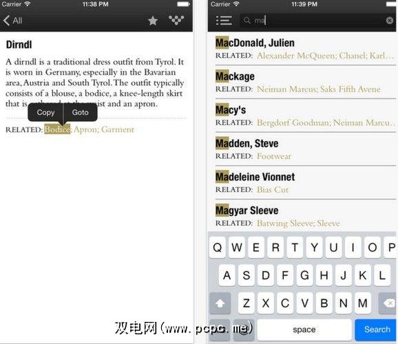 FAD的 1500多个条目可用于脱机处理行话,零售,标签等内容,因此您始终可以拥有一份时尚备忘单。字典也可以在他们的网站上找到。