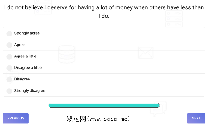 这是一个在线测验,与许多个性测验很相似,大约有10-15个问题。每个陈述都有六个答案,从完全同意到完全不同意。根据您的回复,该应用会将您归类为四种“金钱信念":崇拜,回避,保持警惕,状态。