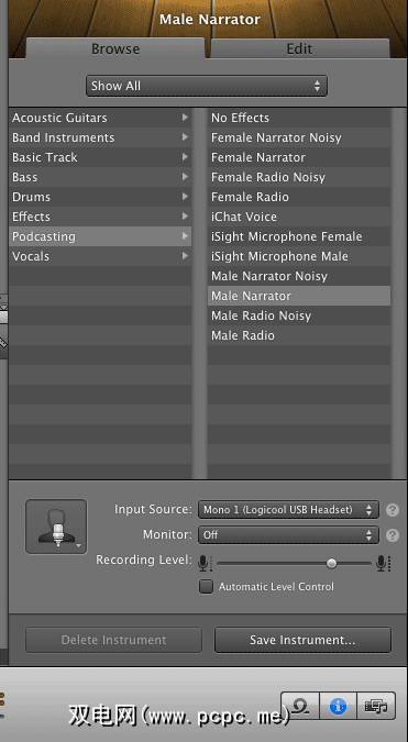 如果您注意到,某些默认音轨会自动获得男性声音和女性声音设置。如果尚未打开,请单击轨道,然后从右下角的小i图标中选择轨道信息。从“播客"或“人声"部分,您可以选择各种预设效果以应用于您的曲目。进行一些不同的设置,然后查看最喜欢的设置-或者您可以不选择任何效果。