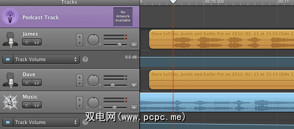 创建一个新播客专案 –这将为您提供一个特殊的播客曲目,稍后我们将使用它。您还可以从其他几个方面入手,但是现在需要设置多少。除了提供的“叮当声"音轨外,我通常还会添加其他一些人声音轨以及其他效果音轨。