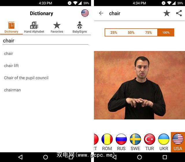 好消息是,即使在免费版本中,Spread Signs也提供了从英语到瑞典语再到印度语在内的多种不同手语的翻译。