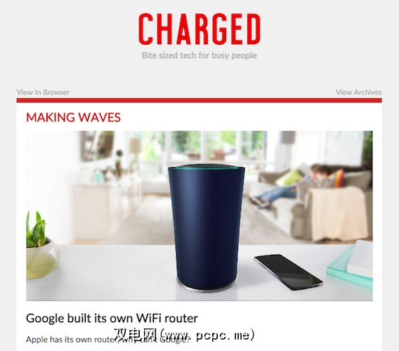 收费新闻简报与技术,长期阅读和新兴企业有关。因此,我想认为此新闻简报非常适合PCPC.me读者群。由Next Web的编辑Owen Williams策划的Charged收集了Web上的各种链接,以及“在Twitter上窃听"和“趋势产品"。毫无疑问,这是我最喜欢的新闻之一。