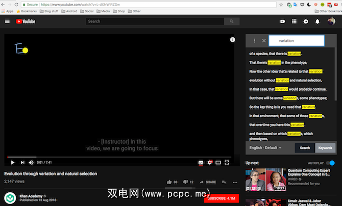 Invideo是适用于YouTube学习者的另一个便捷的Chrome扩展程序。顾名思义,Invideo实质上允许您搜索视频的字幕,使其非常适合您在寻找特定主题时使用。该扩展程序会在每个视频的底部启用一个按钮,单击该按钮,然后会弹出一个搜索框。在此处输入关键字,然后跳到找到该关键字的部分。