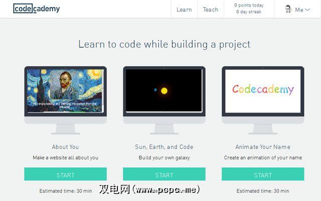 关键区域–学习如何编码的方法发生了变化。从第一步开始,您仍然可以遵循学习语言的线性方法。但是现在,您还可以在使用“项目"进行一些有用的操作时快速使用它(如下面的屏幕所示)。