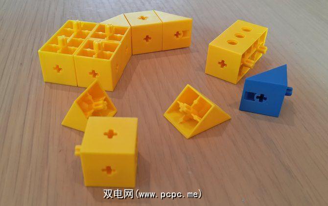 要使用Tinkerbots构建任何东西,您需要立方体。有黄色和蓝色可供选择,包括各种形状。有些可能是立方体,有些可能是长方体,而有些则是三棱柱。