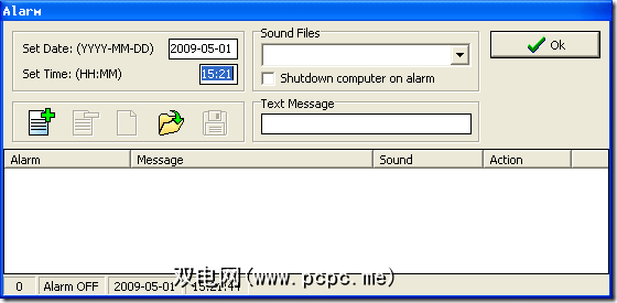 正如我之前所说,“警报"设置可以使用您自己的声音文件设置声音警报,并在屏幕上显示文本消息。您也可以使用此警报来关闭计算机。看到我知道它有实际用途;)