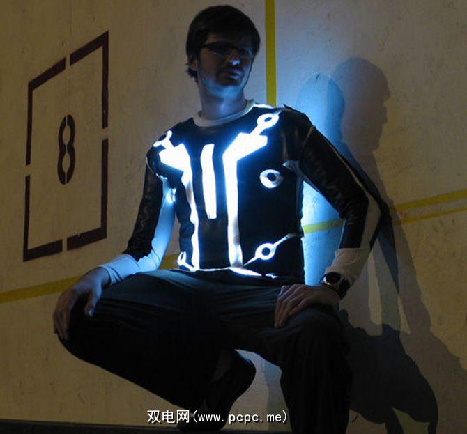 钣金化学家用一个简单但鲜艳的皮革和LED灯带设计制成了Tron西装,形成了一个缺口。