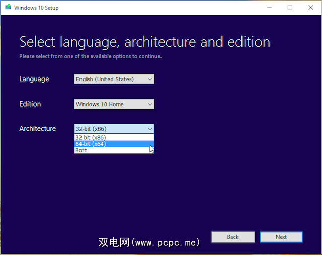 在Windows PC(不一定要升级的PC)上运行安装文件。按照步骤操作,在Windows 8上出现提示时添加产品密钥。Windows8.1在此过程中没有提示,但在安装过程中会要求您输入密钥。该安装程序将识别密钥所针对的版本,并将开始下载该版本的Windows。在Windows 8.1工具中,您可以选择是32位安装程序还是64位安装程序,或同时选择两者-选择两者。