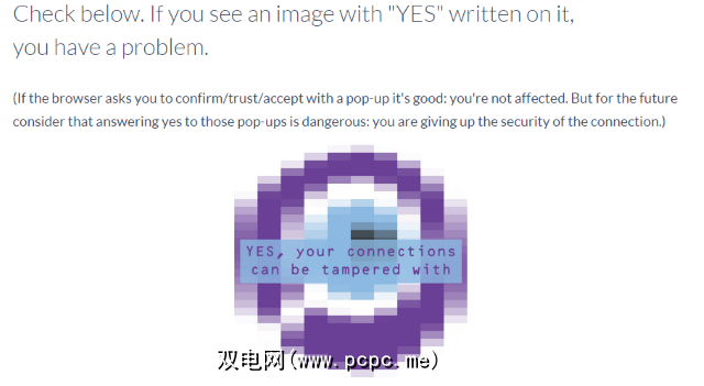 首先检查计算机是否受到影响。前往https://filippo.io/Badfish/并检查结果。如果如下图所示,则需要采取进一步的措施。