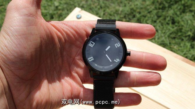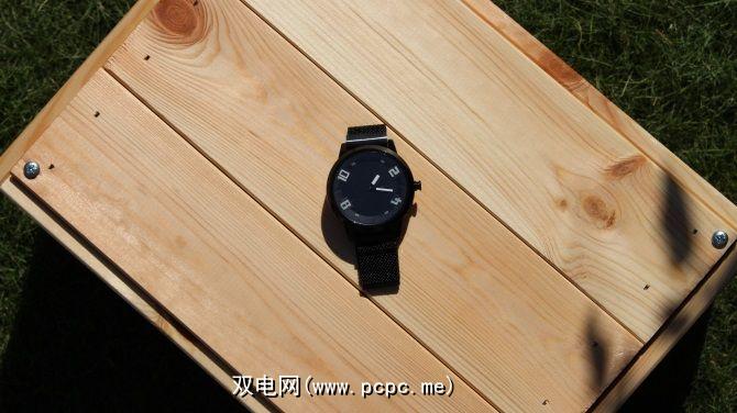 主表盘在2、4、8处只有四个小时标记和10。在分钟5、25、35和55时,还有一些明显较小的指针。找不到秒针,而两只时针则比较清晰。这些指针比平时要短一些,以便为OLED数字显示器向表盘的底部留出空间。