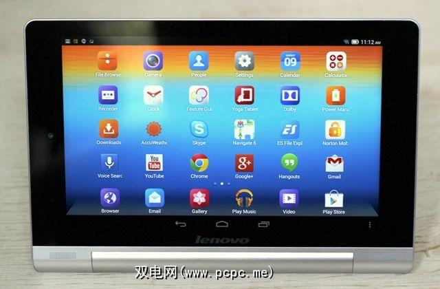 显示: Yoga Tablet的8英寸显示分辨率为1280×800像素,像素密度为188 ppi。这明显不如Nexus 7和Kindle Fire HDX,后者都具有1920×1200像素323 ppi显示屏。