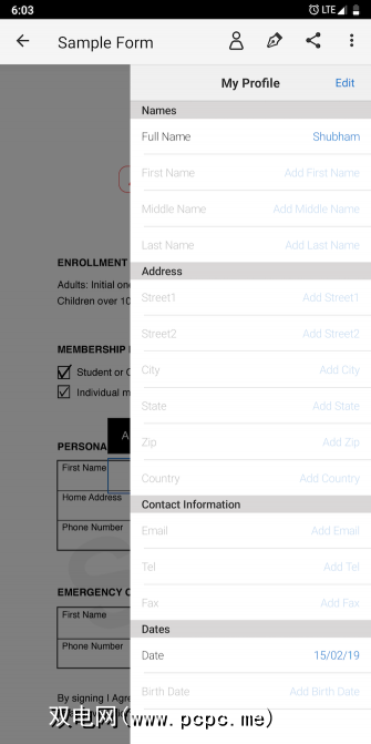 填写完许多表格后,该应用程序将开始提示常见的条目,例如您的姓名和地址,因此您无需手动输入。 p>