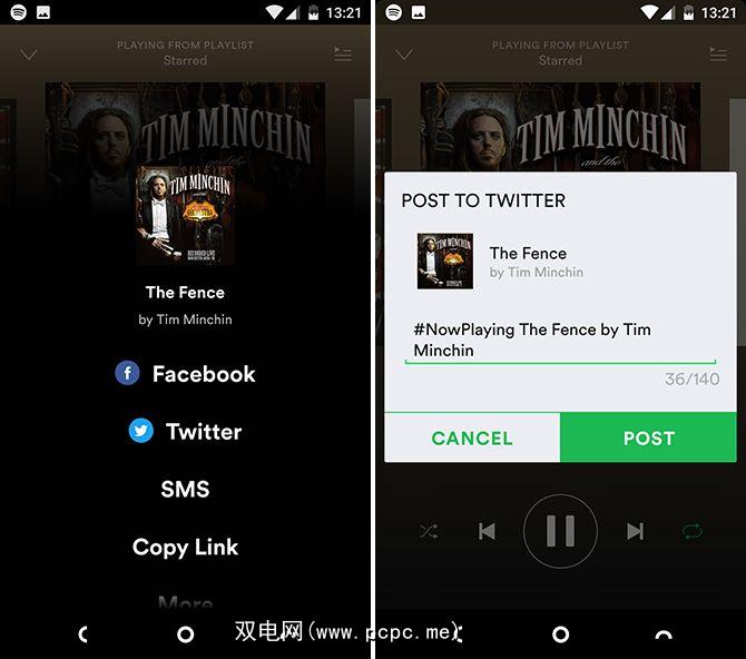通过链接手动共享您正在收听的内容到其他在线内容也很容易服务。点按曲目或专辑旁边的三点菜单按钮,然后选择共享,然后选择共享位置和共享方式。发布到Facebook或Twitter会自动添加 #NowPlaying 。