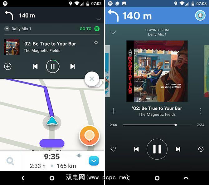 Spotify与Google拥有的Waze导航应用程序的集成解决了这一问题。两者无缝地协同工作。您可以将Waze保持为前台应用程序,并在屏幕顶部覆盖Spotify音乐控件。或将Spotify放在最前面,然后从叠加图中的位智查看您的下一转弯。