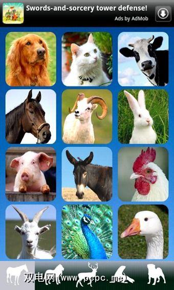 有农场动物和野生动物,甚至还有不同品种的狗(其中大多数被锁定在免费版本中,但是无论如何,它们总会吠叫)。轻敲动物会打开完整尺寸的图像,然后在图像上滑动手指会从雄性变为雌性,从婴儿变为心脏。这是动物的照片,背景中有一首歌。