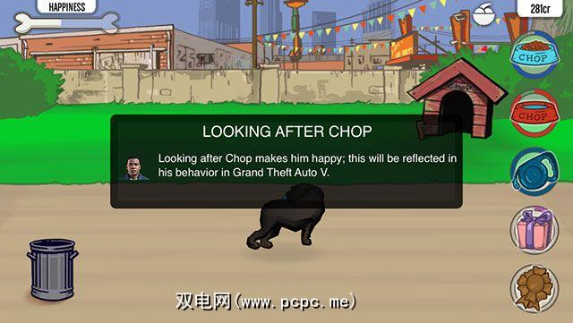 如果您确实向Chop教了一个或两个新的技巧,那么他可以在游戏中执行这些技巧,但前提是他要开心水平足够高。这意味着您必须先拨出iPhone,然后喂食,清洁和走路,才能让他坐在命令位置或在游戏中为您提供爪子。