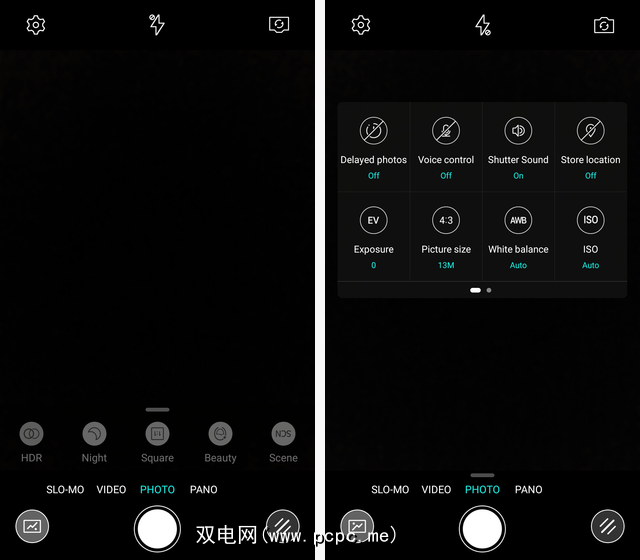在LeTV的EUI中,该界面已从库存的Android进行了相当大的修改。它看起来更像iOS(震撼),并允许您在慢动作,视频,照片和全景模式之间滑动。您随时可以从底部向上滑动以更改效果模式,或点击左上角的设置按钮以调整ISO之类的内容。