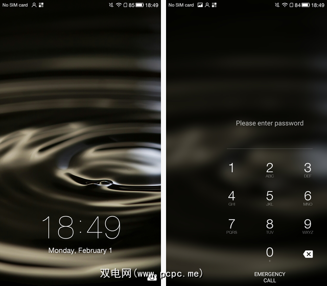打开设备电源时,向上滑动将推开锁屏,如果您设置了PIN码,它将进入右侧的小PIN垫实际上非常方便。您还可以通过点击右下角并向上滑动来访问相机。