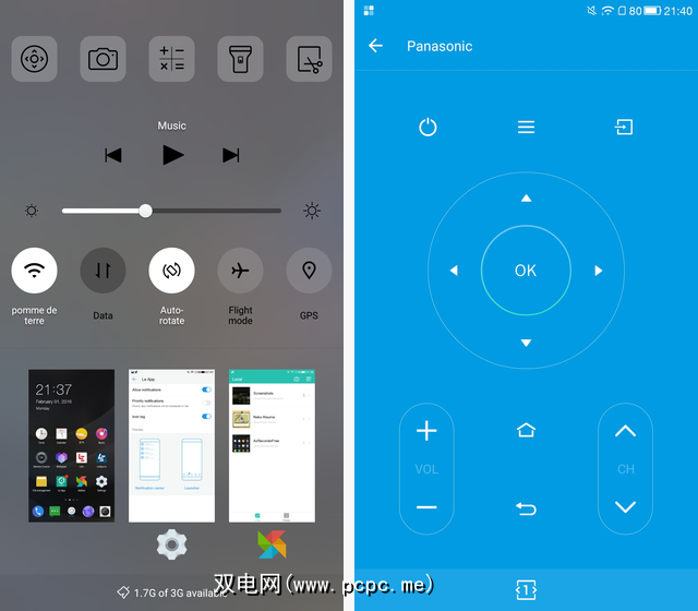 最新消息菜单(通过按下方形电容键访问)也已进行了大量修改,现在是控制中心。在这里,您将可以使用许多工具,例如相机,计算器和手电筒,以及音乐控件,WiFi和蓝牙开关,以及可以在最新应用程序之间进行切换的功能。