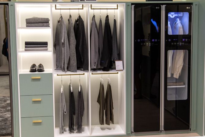 LG的最终AI概念是互联智能衣柜,衣服洗衣机和个人时尚顾问。通过使用摄像头,您的衣柜可以检查衣服的样式和材料。然后,它可以针对该件衣服定制其护理和洗涤路线。它会记住过去使用的衣服和设置,并与您一起使用反馈循环以确保您对工作感到满意。