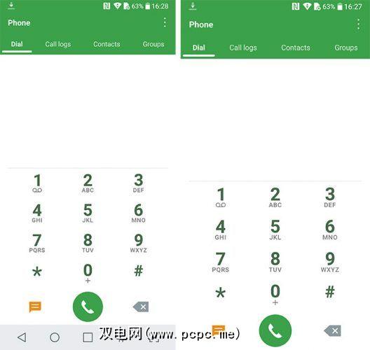 虽然常规屏幕截图也可以捕获导航栏,但Capture +却不能。请参阅下面的电话应用截图。左图是通过常规屏幕截图拍摄的(同时按下主屏幕和降低音量按钮),右图是通过点击Capture +拍摄的。