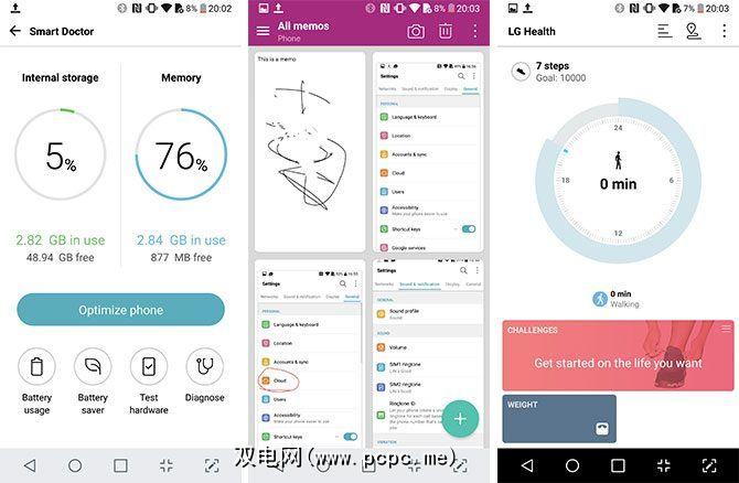 除了自定义软件外,LG还提供了一些自己的应用程序。其中一些替换了Google的选项(例如图库替换了Google相册),而另一些则是补充,例如Smart Doctor。