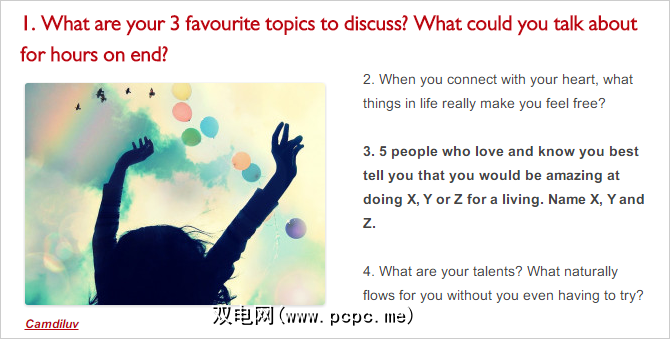 WTF我应该用我的生命吗? —这个很棒的网站是发现自己对生活充满热情的最佳方式之一。这里没有问卷。取而代之的是,该网站为您提供了一系列随机的潜在职业,您可以不断拒绝这些职业,直到找到自己感兴趣的职业。每个职业都与来自该领域的某人进行访谈,后者会解释该工作的样子,他们为什么喜欢它以及他们经常面临的挑战。