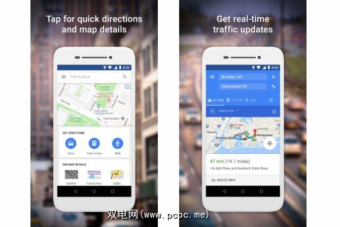 Maps Go是Google Maps的轻量级版本。它保留了常规Maps应用程序的大多数功能,例如实时路况更新,路线,公共交通以及有关本地商家的信息。