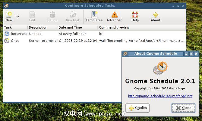 Gnome-Schedule使您可以使用cron以更简单的方式安排任务。 Gnome-Schedule会以一种易于阅读的格式显示该符号,而不是在crontab文件中显示的符号,该文件看起来像 0 * * * * 。如果您希望任务每小时发生一次,只需安排它每小时运行一次即可。 Gnome-Schedule为您处理繁重的工作。