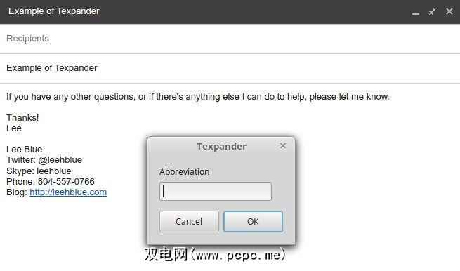 虽然AutoKey是功能完善的应用程序,但Texpander是一个相对简单的Bash脚本,旨在提供类似的功能。您为该脚本分配了键盘快捷方式,该快捷方式随后弹出一个对话框,类似于您从Linux启动程序中看到的对话框。然后,您可以像使用其他文本扩展软件一样键入缩写。