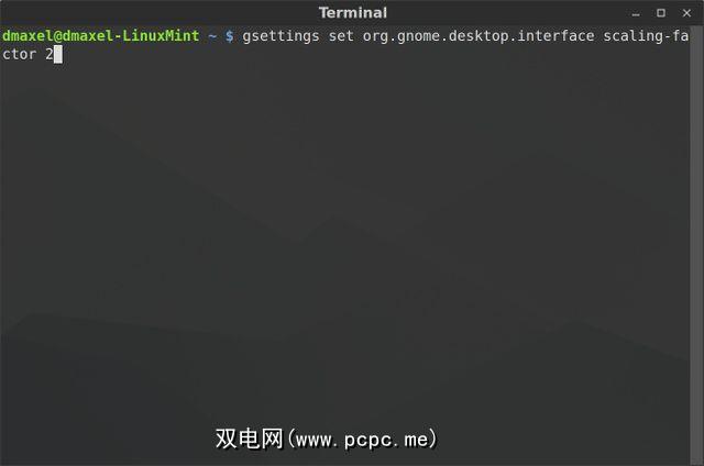 gsettings set org.gnome.desktop.interface scale-factor 2